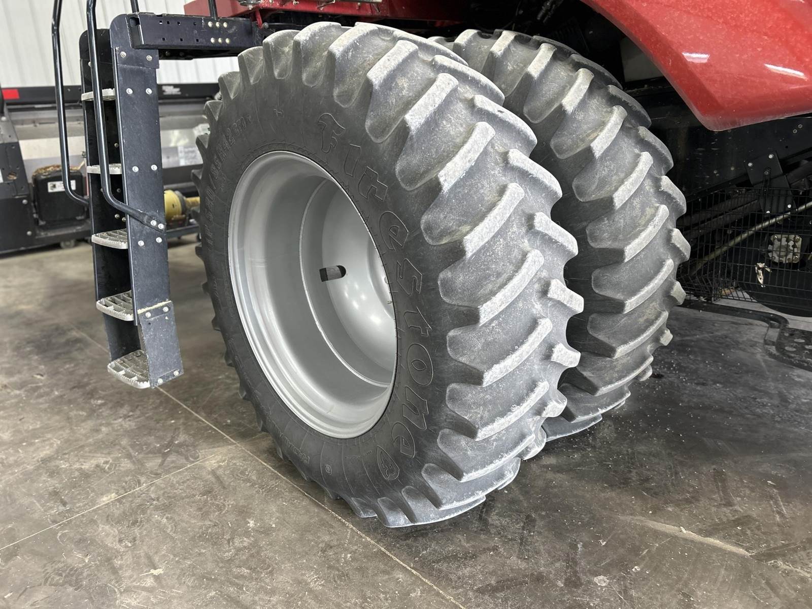 Firestone IF520/85R420 duals, Firestone VF 600/70R28 rears,