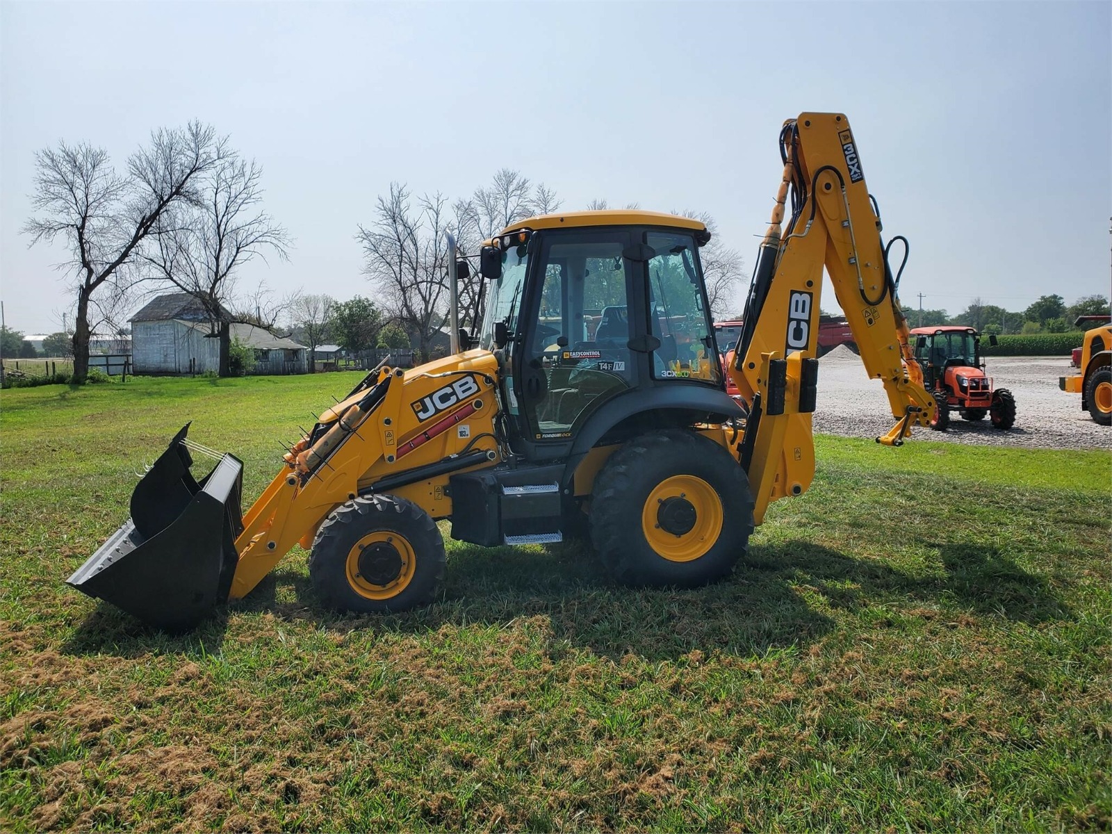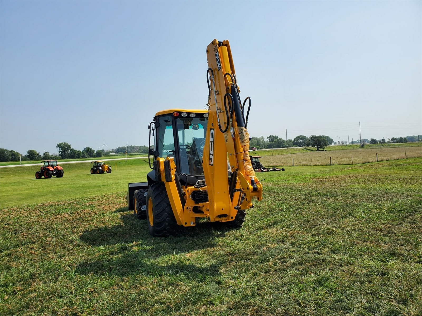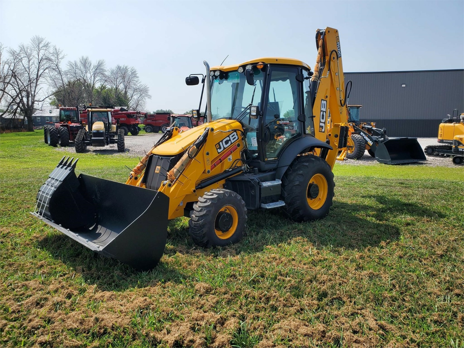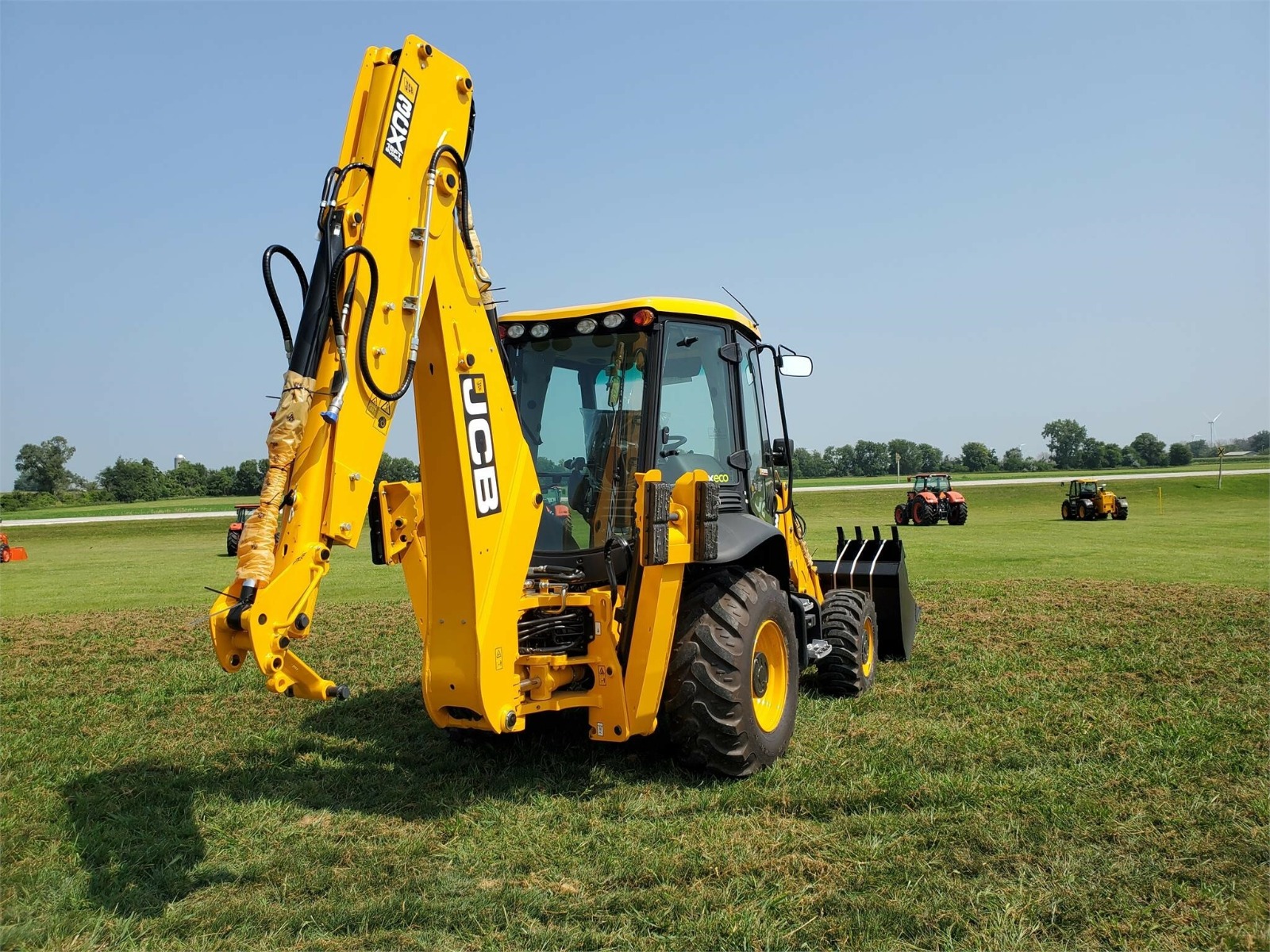 5/8 Loader Pipework with 92″ Front bucket with bolt on cutting edge, 24″ rear bucket, 110V Block Heater, Cab with LIVELINK, AC, Galaxy Industrial 14-17.5-10 and 19.5L-24-12 Tires. 4WD/2WS with Powershift Transmission, 15ft Center mount Backhoe with ExtraDig Extending Dipper, Front and rear working lights, Battery Isolator Toolbox, Telescopic Steering Wheel, English Territory Pack, Exterior Mirrors, Hammer/Bi-Directional Pipework