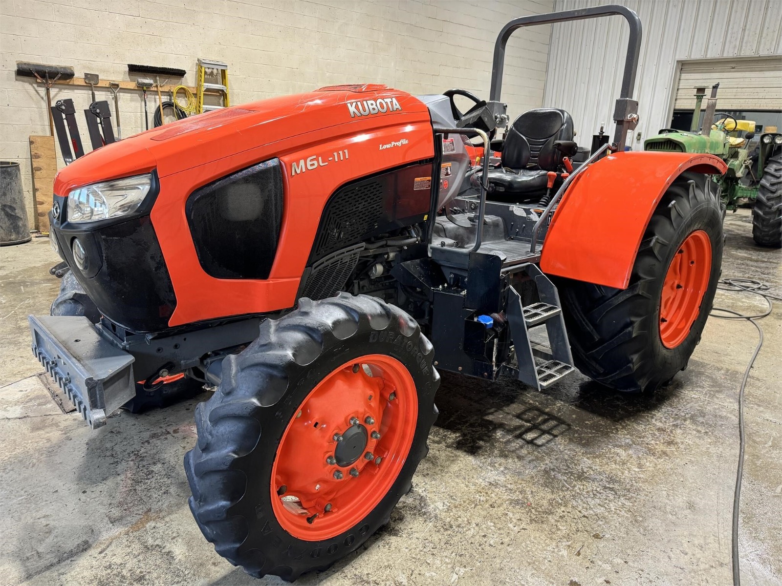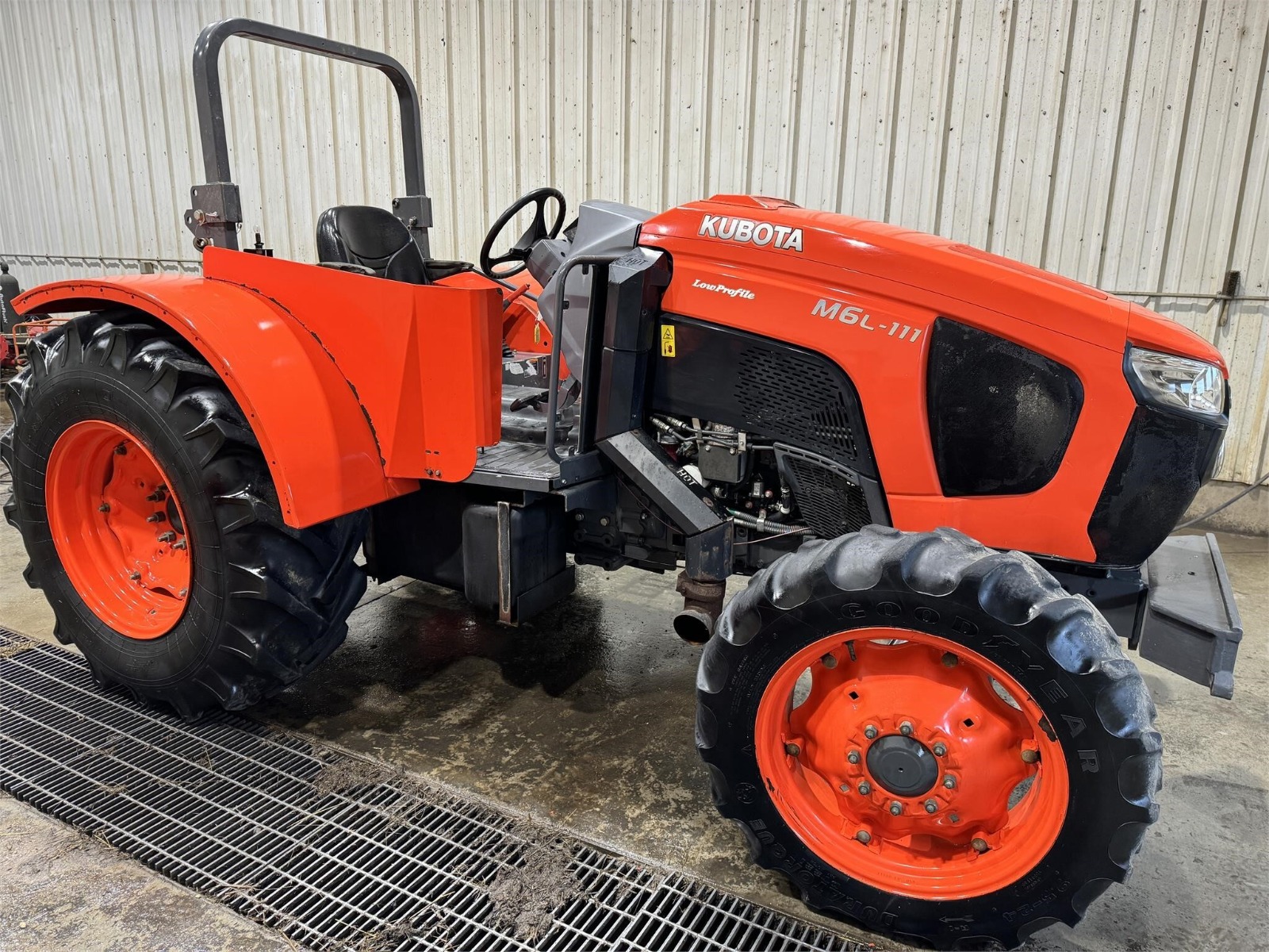 2019 Kubota M6L-111SDS 4×4 tractor with 2,00 hours. This model features a 114-horsepower engine and is equipped with ROPS for operator safety