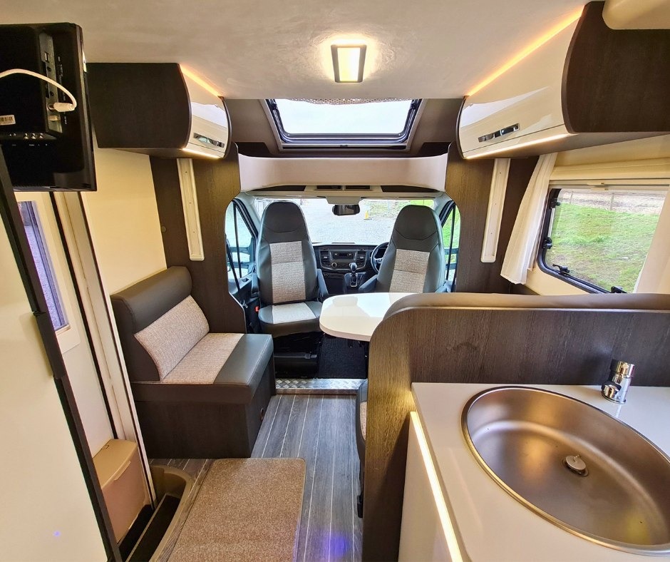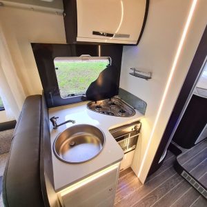 The Auto-Sleepers Broadway FB is a premium British-built low-profile motorhome featuring a popular fixed French bed (FB) layout. It combines a spacious front lounge, a fully equipped central kitchen, and a rear bedroom with a side washroom and separate shower. Known for its high build quality, comfort, and practical design, it is ideal for couples or small families seeking a refined touring experience.