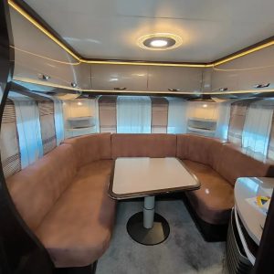 | Layout | Front lounge / central kitchen & washroom / rear bunk beds |