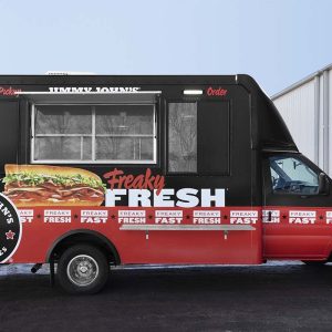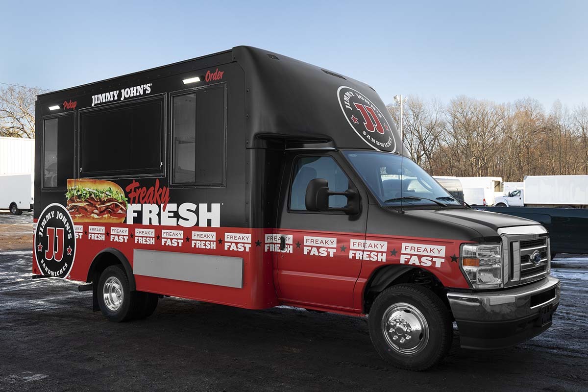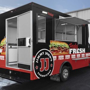 he first of its kind, this food truck for quick-service giant Jimmy John’s will offer savory subs and crunchy Jimmy Chips® at locations throughout Central Illinois. Housed in a Ford E350 Cutaway with 14′ body, this mobile kitchen contains everything you need for serving up sandwiches freaky fast.